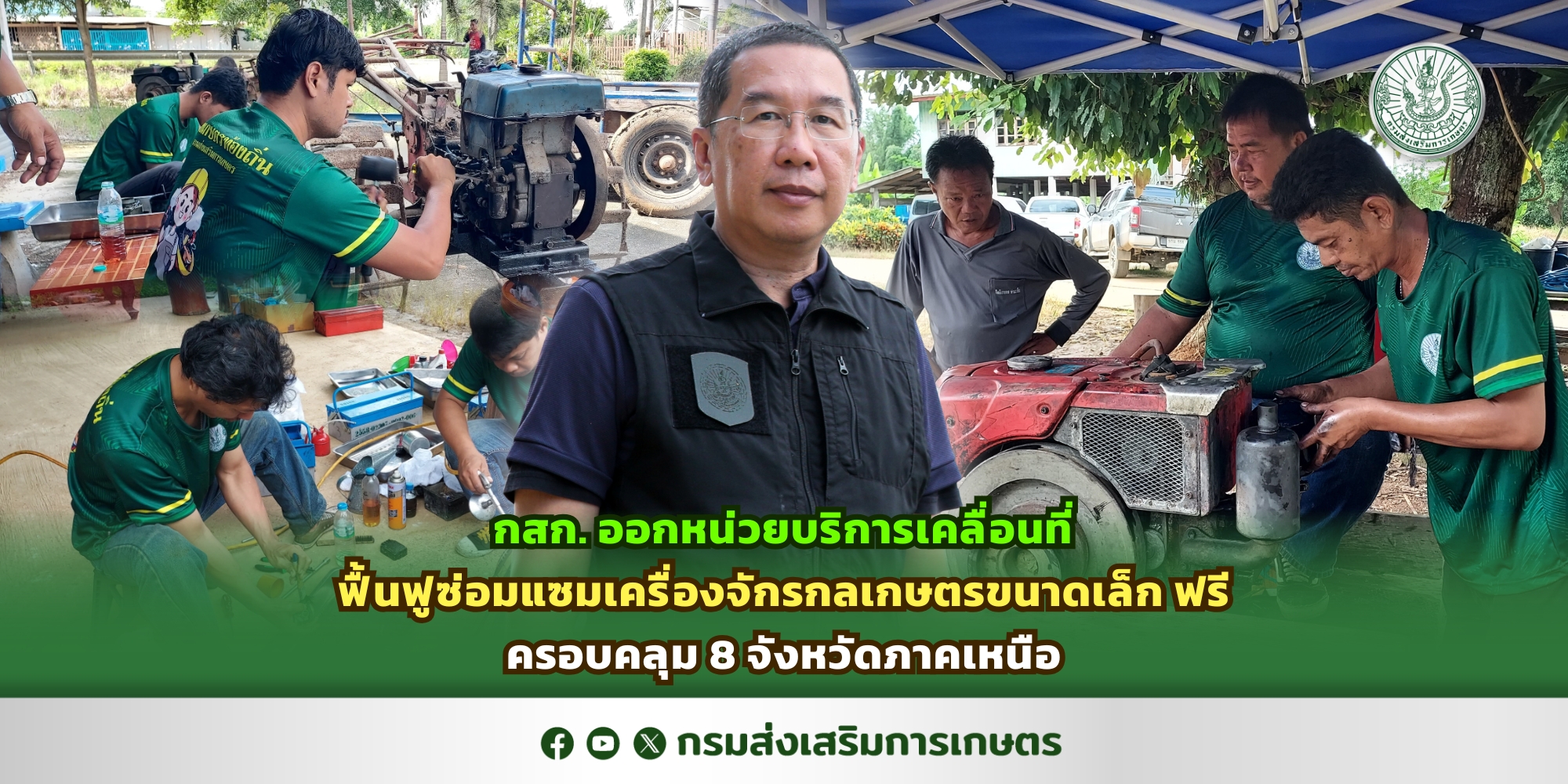 นายพีรพันธ์ คอทอง อธิบดีกรมส่งเสริมการเกษตร เปิดเผยว่า จากสถานการณ์อุทกภัยรุนแรงที่ภาคเหนือเผชิญในช่วงที่ผ่านมา ส่งผลให้เครื่องจักรกลเกษตรของเกษตรกรเสียหายจำนวนมาก การซ่อมแซมต้องใช้ค่าใช้จ่ายสูงและเป็นอุปสรรคต่อการเพาะปลูก กรมส่งเสริมการเกษตรจึงได้จัดหน่วยบริการเคลื่อนที่ลงพื้นที่ ตรวจเช็กและซ่อมแซมเครื่องจักรกลเกษตรฟรี อาทิ การถอดล้างชิ้นส่วน เปลี่ยนถ่ายน้ำมันเครื่อง ตรวจสอบระบบกำลังอัด ระบบหล่อลื่น และระบบน้ำมันเชื้อเพลิง เพื่อให้เกษตรกรสามารถกลับมาทำการเกษตรได้อย่างรวดเร็วหลังน้ำลด