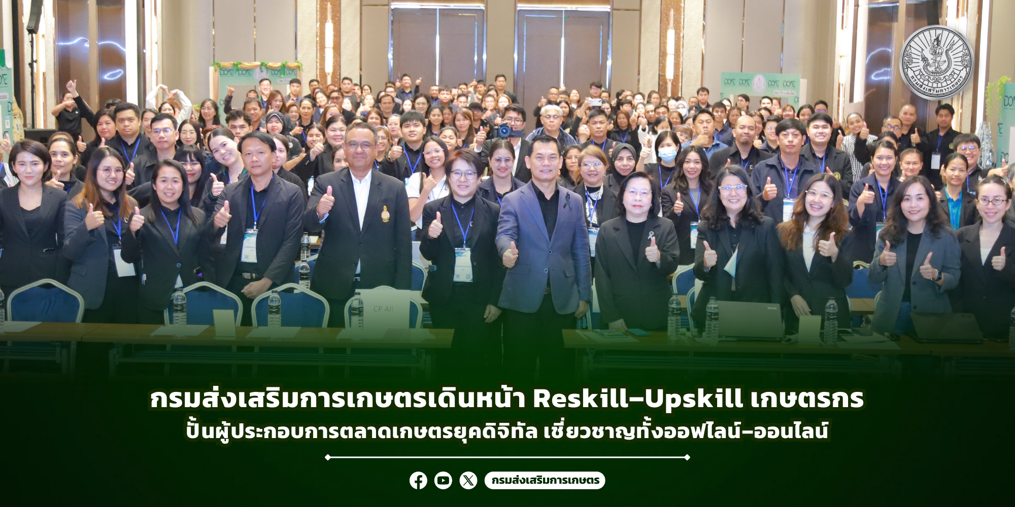 กรมส่งเสริมการเกษตรเดินหน้าเปิดโครงการพัฒนาความรู้และศักยภาพเกษตรกร มุ่ง Reskill–Upskill เพื่อยกระดับเกษตรกรและเจ้าหน้าที่สู่การเป็นผู้ประกอบการตลาดเกษตรยุคดิจิทัล รองรับการเปลี่ยนแปลงของเศรษฐกิจและพฤติกรรมผู้บริโภคในปัจจุบัน