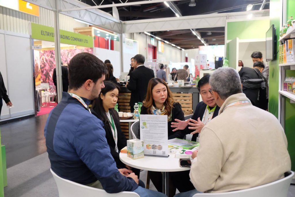 BIOFACH นับเป็นแพลตฟอร์มระดับสากลที่รวบรวมเครือข่ายผู้ประกอบการในอุตสาหกรรมอาหารออร์แกนิคจากทั่วโลก พร้อมกิจกรรมการประชุม เสวนา การนำเสนอนวัตกรรม และการทดลองผลิตภัณฑ์ใหม่ ๆ เปิดโอกาสให้เกิดความร่วมมือทางธุรกิจอย่างเป็นรูปธรรม ในโอกาสนี้ ประเทศไทยได้นำนิทรรศการ “เกษตรมูลค่าสูง” จัดแสดงเรื่องราวความสำเร็จของเกษตรกรไทย พร้อมโชว์สินค้าเกษตรคุณภาพ และสาธิตการประกอบอาหารจากวัตถุดิบออร์แกนิค เช่น ขมิ้นชันผงออร์แกนิค ข่าผง ออร์แกนิค มะรุมผงออร์แกนิค แป้งกล้วยดิบออร์แกนิค พาสต้าข้าวกล้องผสมผักเคลออร์แกนิค (Gluten Free) และพาสต้าข้าวกล้องงอก (Gluten Free)