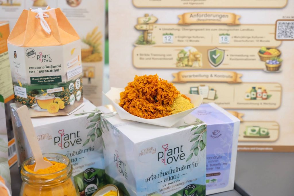 รวมถึงข้าวไทยและผลิตภัณฑ์แป้งนวัตกรรม ได้แก่ ข้าวขาวหอมมะลิ 105 ข้าวหอมนิล ข้าวหอมมะลิแดง ข้าวกล้องหอมมะลิ ข้าวเหนียวขาว กข.6 แป้งข้าวหอมมะลิ แป้งข้าวไรซ์เบอร์รี่ และแป้งขนมปังสำเร็จรูป เพื่อให้ผู้เข้าร่วมงานได้สัมผัสคุณภาพและมาตรฐานสินค้าเกษตรอินทรีย์ไทยอย่างใกล้ชิด การเข้าร่วมงานครั้งนี้สะท้อนศักยภาพสินค้าเกษตรอินทรีย์ของไทยที่มีคุณภาพ ได้มาตรฐาน และเป็นที่ยอมรับในระดับสากล ตอบโจทย์ผู้บริโภคยุคใหม่ที่ใส่ใจสุขภาพและความยั่งยืน พร้อมยกระดับภาพลักษณ์ “เกษตรไทยมูลค่าสูง” สู่เวทีการค้าโลกอย่างมั่นคงและยั่งยืน