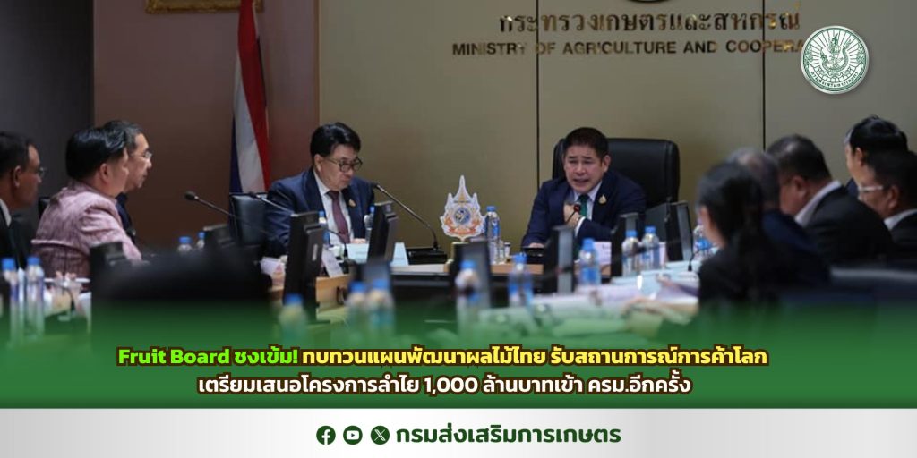 Fruit Board ชงเข้ม! ทบทวนแผนพัฒนาผลไม้ไทย รับสถานการณ์การค้าโลก เตรียมเสนอโครงการลำไย 1,000 ล้านบาทเข้า ครม.อีกครั้ง 09/10/202521/11/2025 ข่าวส่งเสริมการเกษตร, ข่าวเกษตรติดดาว, เว็บกรม Peeramon09/10/2025