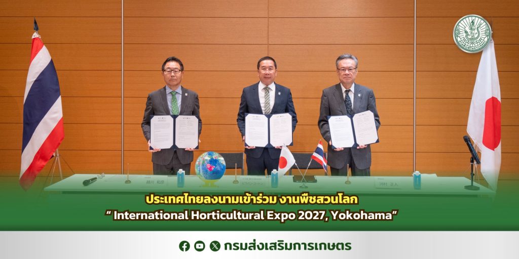 ประเทศไทยลงนามเข้าร่วม “งานพืชสวนโลก International Horticultural Expo 2027, Yokohama” 14/10/202521/11/2025 ข่าวส่งเสริมการเกษตร, ข่าวเกษตรติดดาว, เว็บกรม Peeramon14/10/2025