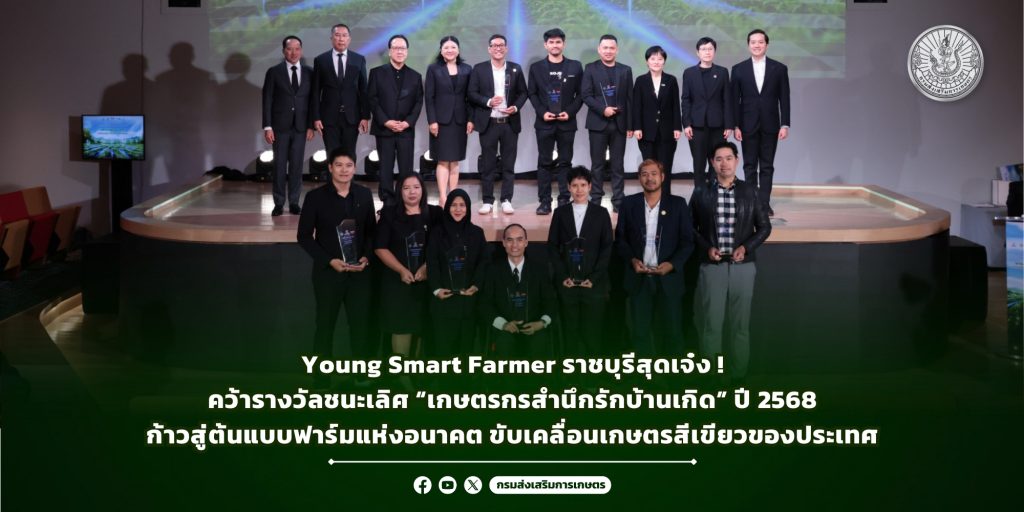 Young Smart Farmer ราชบุรีสุดเจ๋ง! คว้ารางวัลชนะเลิศ “เกษตรกรสำนึกรักบ้านเกิด” ปี 2568 ก้าวสู่ต้นแบบฟาร์มแห่งอนาคต ขับเคลื่อนเกษตรสีเขียวของประเทศ 01/12/202501/12/2025 ข่าวกิจกรรม, ข่าวส่งเสริมการเกษตร Jutamas_admin01/12/2025