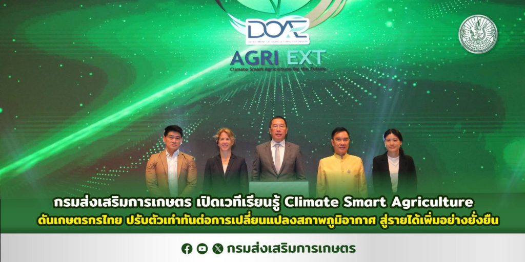กรมส่งเสริมการเกษตร เปิดเวทีเรียนรู้ Climate Smart Agriculture ดันเกษตรกรไทยปรับตัวเท่าทันต่อการเปลี่ยนแปลงสภาพภูมิอากาศ สู่รายได้เพิ่มอย่างยั่งยืน 01/09/202504/09/2025 ข่าวส่งเสริมการเกษตร, ข่าวเกษตรติดดาว Supawan_admin01/09/2025