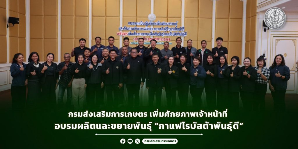 กรมส่งเสริมการเกษตร เพิ่มศักยภาพเจ้าหน้าที่ อบรมผลิตและขยายพันธุ์ “กาแฟโรบัสต้าพันธุ์ดี” 19/11/202521/11/2025 ข่าวส่งเสริมการเกษตร, เว็บกรม Peeramon19/11/2025