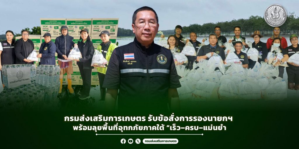 กรมส่งเสริมการเกษตร รับข้อสั่งการรองนายกฯ พร้อมลุยพื้นที่อุทกภัยภาคใต้ “เร็ว–ครบ–แม่นยำ 24/11/202524/11/2025 ข่าวส่งเสริมการเกษตร, ข่าวเกษตรติดดาว, เว็บกรม Peeramon24/11/2025