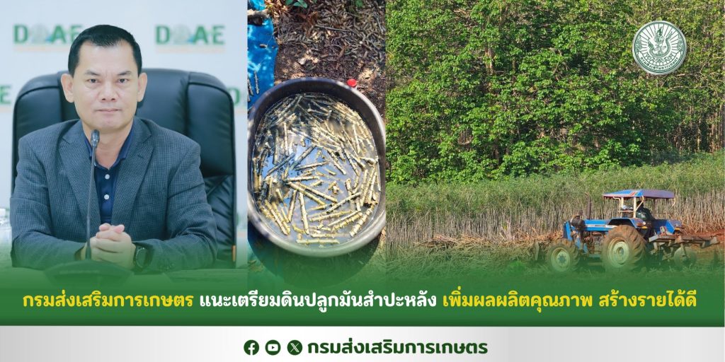 กรมส่งเสริมการเกษตร แนะเตรียมดินปลูกมันสำปะหลัง เพิ่มผลผลิตคุณภาพ สร้างรายได้ดี 27/08/202521/11/2025 ข่าวส่งเสริมการเกษตร, เว็บกรม Nadtasoung27/08/2025