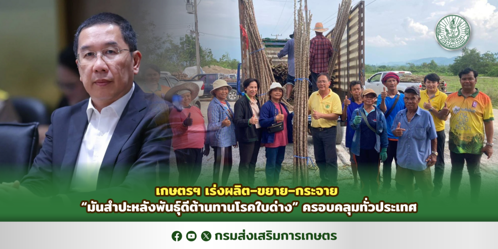 เกษตรฯ เร่งผลิต–ขยาย–กระจาย “มันสำปะหลังพันธุ์ดีต้านทานโรคใบด่าง” ครอบคลุมทั่วประเทศ 24/10/202521/11/2025 ข่าวส่งเสริมการเกษตร, ข่าวเกษตรติดดาว, เว็บกรม Nachaphon24/10/2025