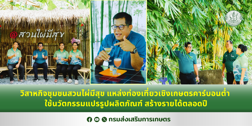 วิสาหกิจชุมชนสวนไผ่มีสุข แหล่งท่องเที่ยวเชิงเกษตรคาร์บอนต่ำ ใช้นวัตกรรมแปรรูปผลิตภัณฑ์ สร้างรายได้ตลอดปี 27/08/202504/09/2025 ข่าวส่งเสริมการเกษตร, เว็บกรม Jirapat T.27/08/2025