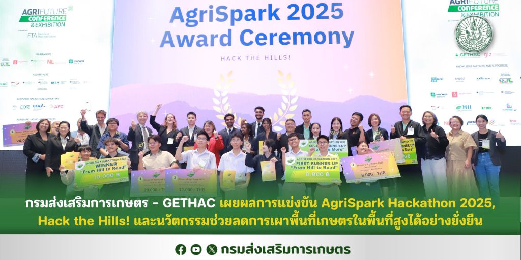 กรมส่งเสริมการเกษตร – GETHAC เผยผลการแข่งขัน AgriSpark Hackathon 2025, Hack the Hills! และนวัตกรรมช่วยลดการเผาพื้นที่เกษตรในพื้นที่สูงได้อย่างยั่งยืน 26/09/202529/09/2025 ข่าวส่งเสริมการเกษตร, เว็บกรม Nadtasoung26/09/2025